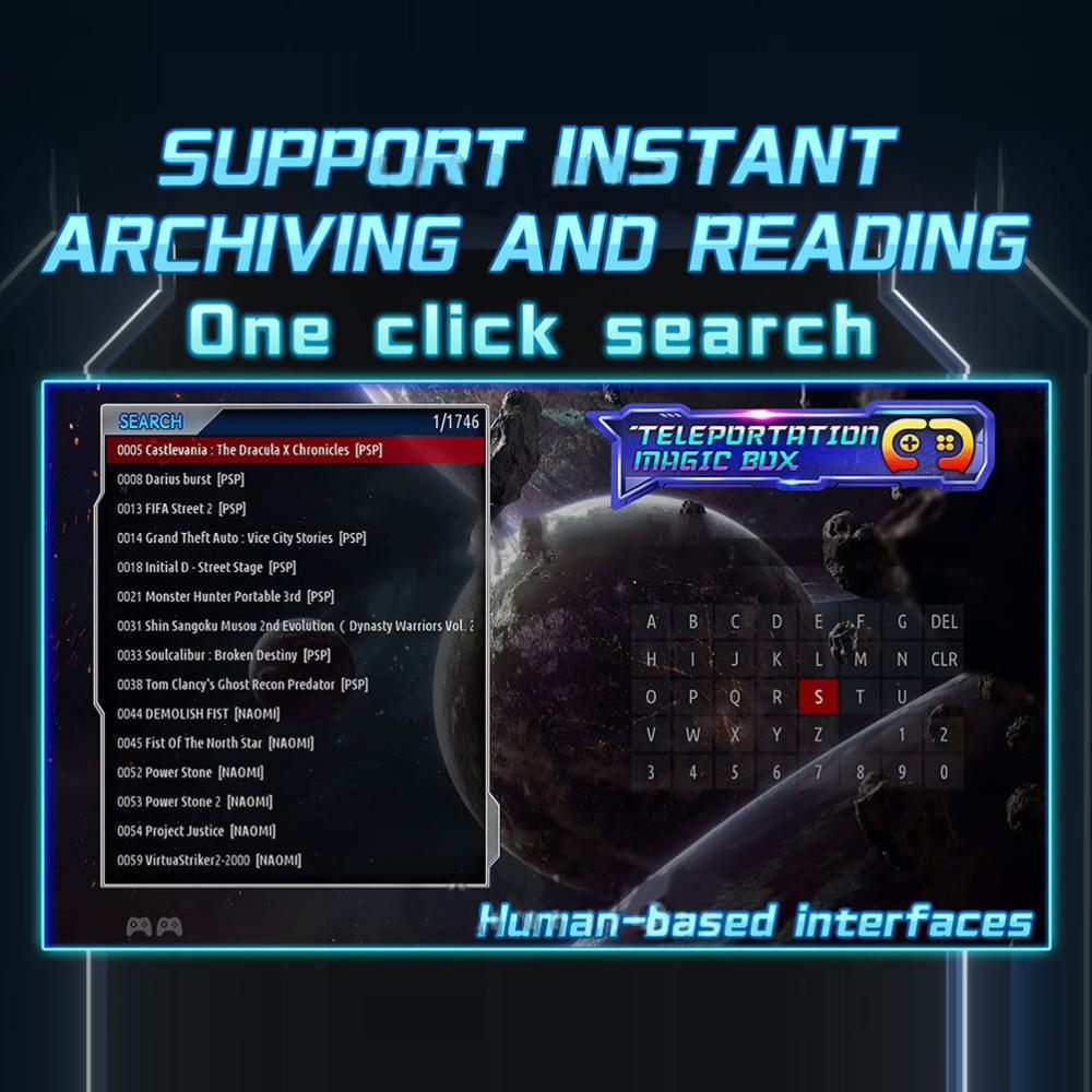Game platform: Compatible for PS/PSP/N64/CPS/CPS1/MD/NDS/SFC/FDS/CPS2/FC/GBA/GBC/SMS/CPS3/MSX2/NGPC/CG/NAOMI/MAME/ ARCADE/MD32X/LYNX/NEOGEO/ATARI,etc 25 major simulators.
